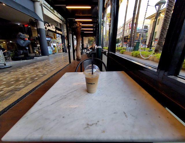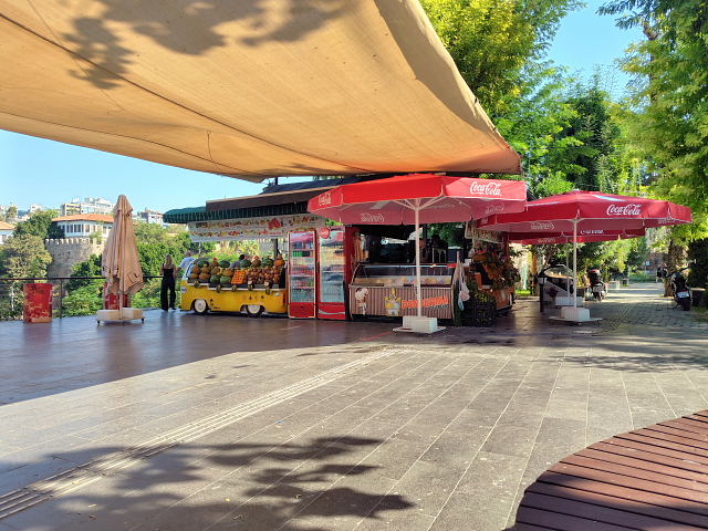 この通を行き来する人は多いけど食べていく人は少ない。トルコに来てから何時もオープン席のレストランで食べてるような。こんな所だとトイレに困らないのがイイ。トラムが走る大通り沿いのカフェCaffeco(少し曖昧)でアイスラテ(130TL)。トラムが横を走る外席に座りマッタリ出来るのはイイ。日本じゃこんなコト出来ないからなあ。アンタルヤは初日から馴染んでいる。トルコは何回も来てみたい所じゃないと思うけど。ミグロススーパーでレモネードとミネラルウォーター、ハム計59TL。一番安いレモネードは味が薄い。