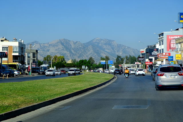 さ~て今日は本番。9時前に下に降りたら運チャンがきていた。昨日喋ったオッサンとは違うけど話は通じていた。クーラーを点けずに窓を開けて走行。異国ではこの方が雰囲気を肌で感じられる。オトガル付近は渋滞が酷かったけどそれ以外は快調に走れた。アンタルヤ周辺の山は全部岩混じりの禿げ山、ギリシャ神話映画に出てくる世界。