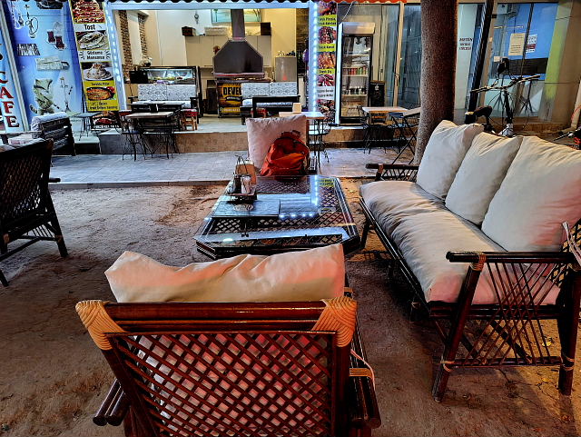 この宿の朝食は8時15分と変な時間。場所もこの宿じゃなく数分歩いた海辺のレストランでだ。少し散歩してからにしようと7時50分にレセプションに行くと鍵が掛かっていて誰もいない。8時前になるとバイクに乗って太めのオネーチャンがやってきた。チケットというと“まだ時間が早いから…”。“付近を散歩するので”と言うと納得した様子でチケットを切ってくれた。毎朝こんなコトするのも邪魔くさいなあ。この宿に泊まる客はほとんどが自炊(他に食べに行く)タイプなんかも。
