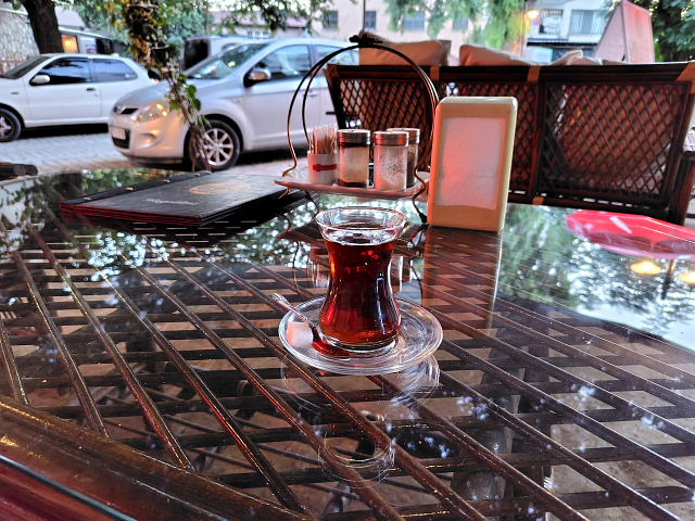 ホテルに帰り明日のパッキングをした。まだ150TLも残っている。もう一度夜の街に出てカフェを探す。ポツポツしだしたのであまり遠くまでは行けない。看板にザクロチャイと書いてあるカフェに入ると、今日は売り切れ。止めとけということか。