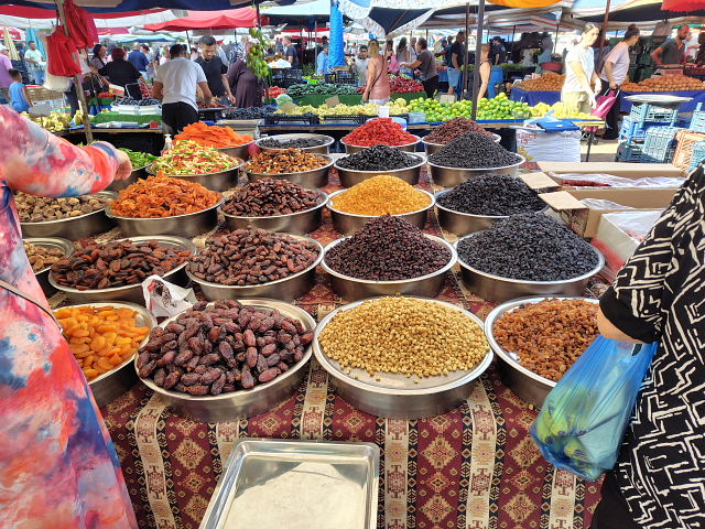ホテルは細かい所では文句もあるがどこもそれなりに良かった。イスタンブール以外のホテル・コンセントがCタイプだったのはこちらの判断ミス。でもタイなどと較べると宿泊代がメチャ高い。これででもヨーロッパに較べると安い方なんか。レストランは肉が主体でベジ物は少ない。味は……こちらの好みじゃないけど不味くはない。中華料理は3日持たんかったがここは2週間行けたんだから自分の体に合っていないということでもなさそうだ。スパイスの味付けが好みじゃないんだろう。パンの種類は豊富、欧米よりもパンの国なんだ。フルーツは葡萄、ザクロ、スイカ、りんごなどがメインでトロピカルフルーツはない。名物のナルスユ(ザクロジュース)を何回か飲んでみたが、日本で飲むのと変わらなかった。スイカジュースは不味い。ここでは果汁ジュースよりレモネードが売れ筋みたいだった。