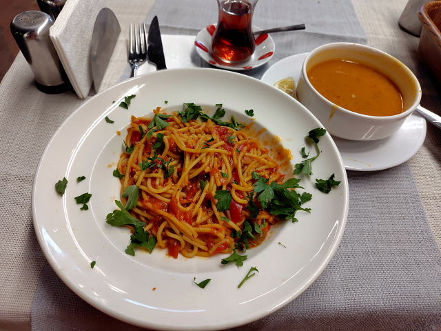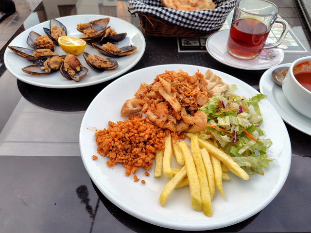 アンタルヤ最後の晩餐、と言うほど大袈裟じゃないけど目抜き通りに面したレストラン TAMPİYON KALEİÇİ RESTAURANT。目の前を観光客がゾロゾロ通っていく。ガイド付きツアーが意外と多い。トマトスープ、ムール貝詰め物、チキンドルネナンとかとチャイで820TL(カード支払い)。パンは何処でも付いてくる。味は……どの店で食べても基本の味付けは変わらんようだ。子猫がテーブルの下を彷徨きチキン片をやるとパクついていたがあんまり懐いてない様子。旅の雰囲気としては立地も良いしスタッフも悪くない。