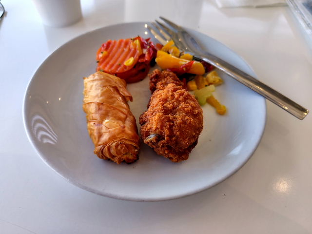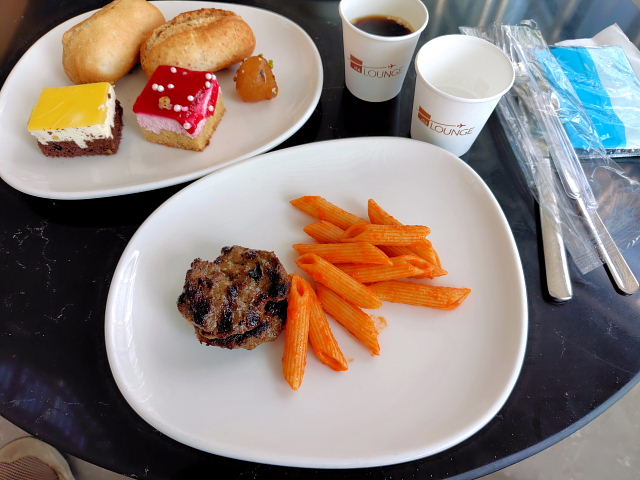 入ってる人は多いけどバカでかいラウンジだから探せば座る所はある。一番端まで行くと席が開いていた。昼食をと色々食べみた。行列にならんでるとご飯とカレーを盛ってくれた。他はパスととコーヒー(カプチーノはない)、パンはあるけどバター、ジャムがない。有名空港のラウンジなのに物足りない。ビジネスクラス専用ラウンジじゃないので仕方ないのかも。ハッキリ言うと食べ物はイマイチ、人が多いので五月蠅いし、ドバイやバンコクのラウンジに較べると落ちる。関空よりは良いけど。トルコは最後まで食で感動しなかった。
