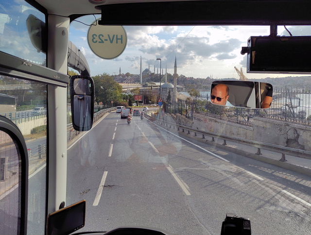 予想より早く15分ほどでタクシムモスクに着いた。空港行バス停に着いたのは4時50分。停まっていたバス(5時発)に乗り込むと8割り方埋まっていた。このバスのチケットは外じゃなく中で買うやり方。出発予定時間になると満席になりオッチャンが料金を集めに来た。ネットではクレジットカード、イスタンブールカードが主流みたいなことを書いてあるが。見た限りではほぼ全員がキャッシュ。ネットにかき込んでる連中は、何時、誰の情報をネタにして書いてるんだろう。