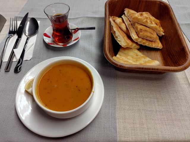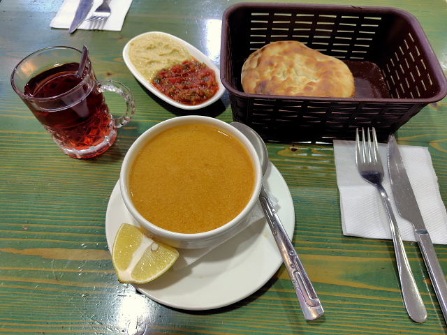 部屋に帰ると掃除は終わっていた。夕食は昨夜に続きロカンタスEhli Tat Lokantasiでレンズ豆スープ、キョフテ、ブロッコリ・人参の煮物、パンは自由で370TL。アラカルトのレストランもいいけどこっちの方が自分向き。
