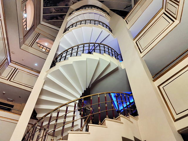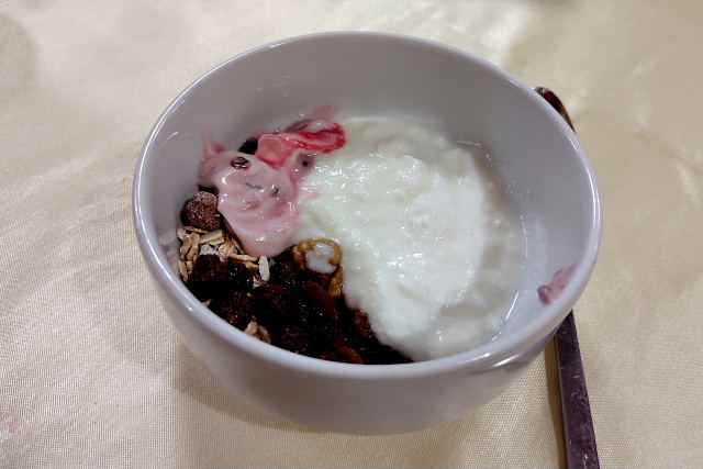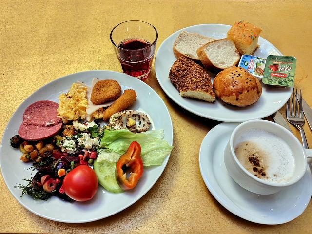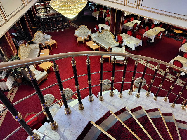 7時半、螺旋階段を降りて朝食会場に。このアプローチは良い。豪華な椅子が並べられまさにパレス。料理はいろいろあって今回旅行で泊まった宿では最高かな。ど真ん中ののソファ席に座りユックリ食べる。泊まり客は全員年配の白人、東洋系は自分一人だけ。食べていると人が増えてきた、意外と泊まってるんだ。ネット評価では食事が美味いと書かれていたが本当だった。好き嫌いは別としてだが。
