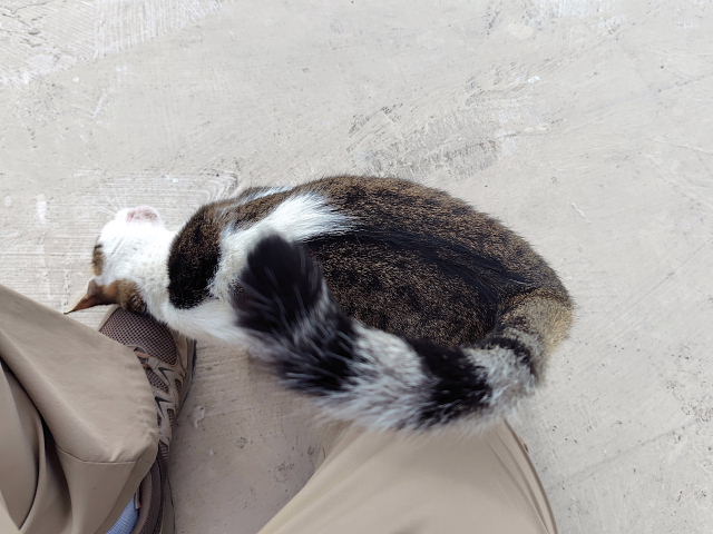 昨日と打って変わり朝から良い天気。気温も上がり表に出ても寒くない。毎朝窓の外にやってくる猫チャンに、昨日ハムをやったのを覚えているのか今日も同じ時間にやってきて“はよエサくれ”。窓を少し開けると入ってきそうになる。この前屋上にいたのもこの子だ。この階はテラスがあるからこんなコト出来るけど下の階なら無理。