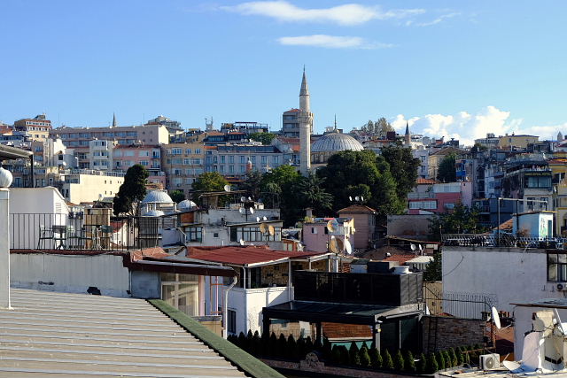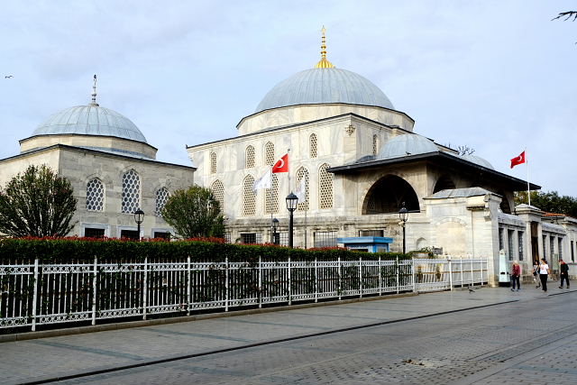 もう5時、停まっていたタクシーにホテルまでていうと“ダメ”みたいな返事。近い場所だと儲けにナランから拒否されたみたい。バス停近くのPertevniyal Valide Sultan Camiiでトイレ。アンタルヤに較べるとイスタンブールは涼しく長袖が合う。この気候だと歩いていっても大丈夫と歩き出したがイスタンブールはどこも起状がある。アクサライからスルタンアメフトまでは上り坂、そこからホテルまでは急降下。