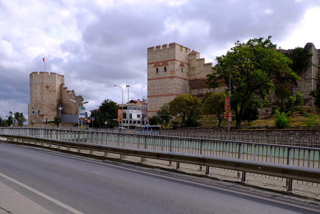 地下駅を出て陸橋を渡ると目の前が駅だった。T4ラインはここが起点、電車も停まっていた。カーリア・モスクに近いエディルネカプ駅は3つ目。この車両は日本と同じような感じ。トルコ語の車内放送があったが英語のはなかったみたい。外人観光客はこんな路線に乗らないから。車窓からは何本もミナレットが見えていた。エディルネカプ駅着10時9分。地下駅だった。上に出るとすぐ目の前にテオドシウス城壁が立っていた。トプカプ駅からここまでも城壁が連なっていた。城壁内はイスタンブール旧市街。