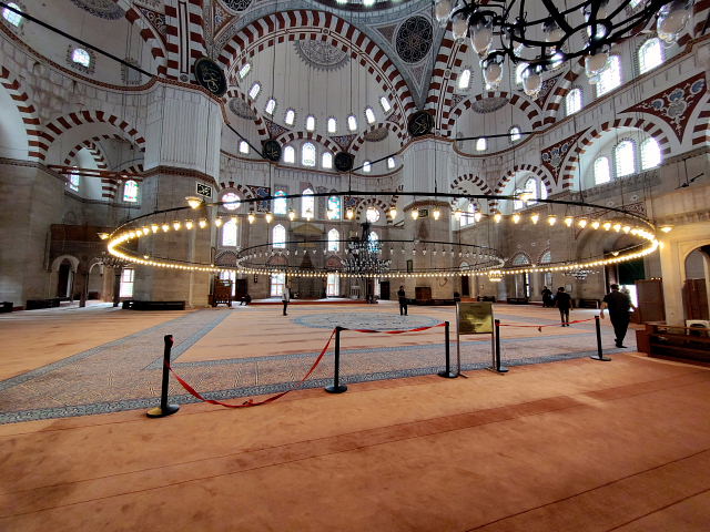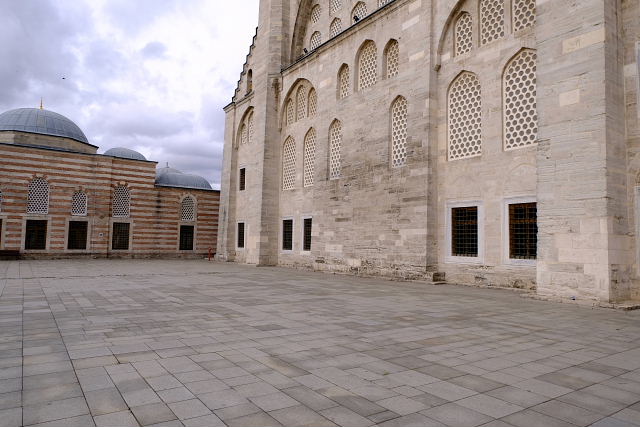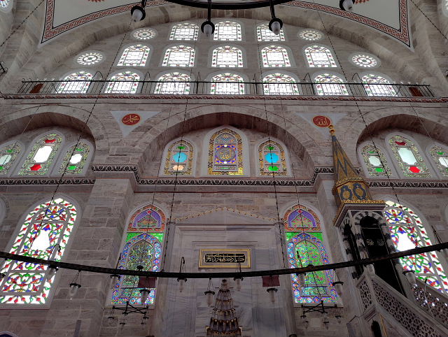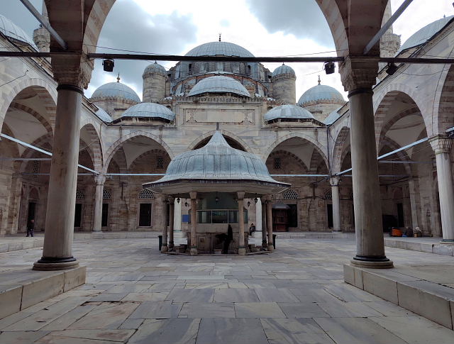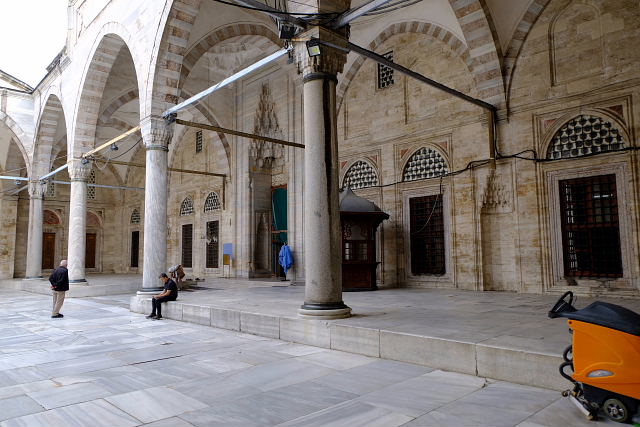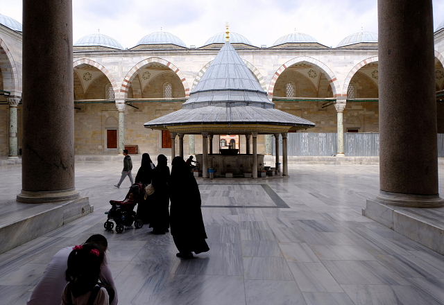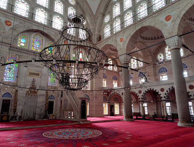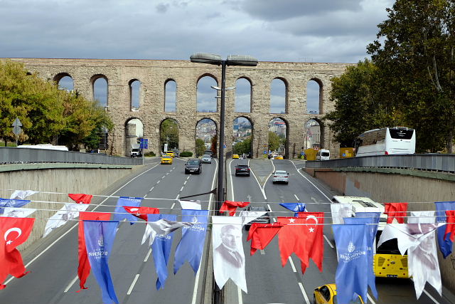 南東の道を下りローマ時代の水道橋(Bozdoğan Kemeri )脇の公園まで来るとポリスがワンサカ集まっていた。ナンかイベント、集会でもあるんだろうか。女性ポリスもライフルを構えていた。トルコは偶にテロが起きる国だから警官も命がけだ。次のモスク Şehzade Camii の中は白基調で明るい。人もいなかった。イスタンブールでも観光客が集中する所は限られている。