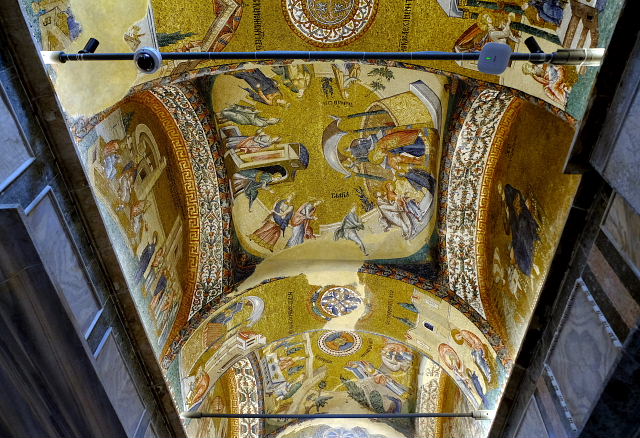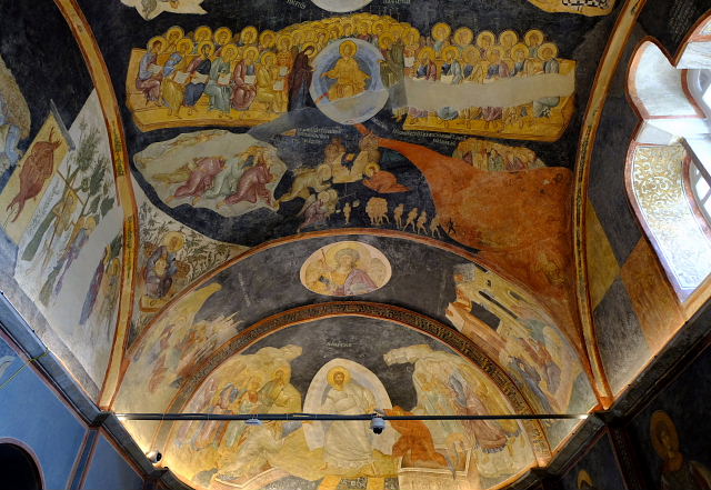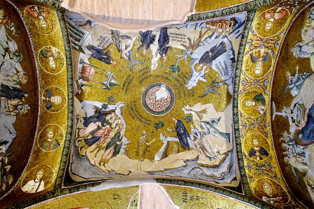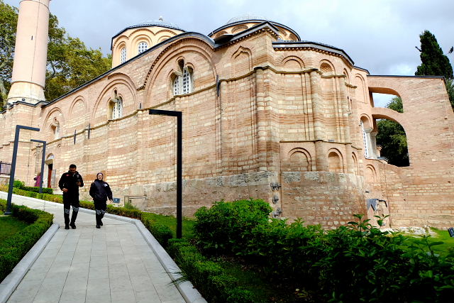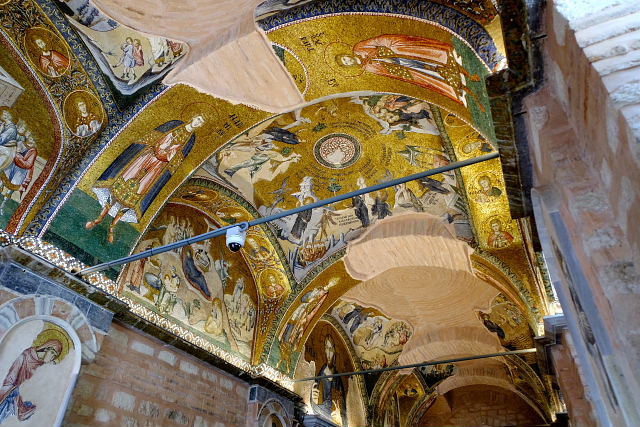 お次は今日のメイン Kariye Camii(カーリエ・モスク)。モスクじゃなくキリスト教フレスコ画の宝庫だから美術館と言った方がイイ。アヤ・ソフィアよりこっちに来てみたかったんだ。入場料(1000TL)払い中に入る。建物自体は小振りで特徴もなく壁画がなかったら誰も見向かないだろう。その絵なんだがキリスト教題材のやつはどうも肌に合わん。こんなんより仏教寺院の壁画の方がずっと面白いと思うんだが、好みの問題か、信仰の違いからか。写し回るにも小さな所だからすぐに済んでしまう。