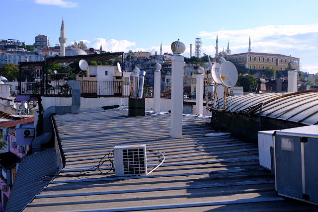 8時半出発。予定では新市街のモスク10ヶ所ほどを回るつもり。外に出るとヒンヤリ、長袖シャツで丁度の気温。湿気はないし日本の10月みたいな感じ。朝のイスティクラル通は人通りも少なく昨夜の賑わいが嘘のよう。タクシム広場まで石畳の道を上がる。チェンマイみたいな平たい所だとサンダル履きがいいけど、こんな石畳の上り坂だと靴じゃないと往生する。その国に行かないとこんなことは分からない。
