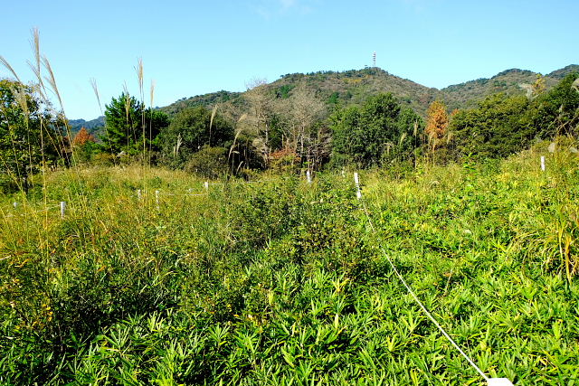 登山道は所々イノシシが掘り起こした跡が残っていた。さ~てリンドウの原っぱはどうか。期待半分で降りていくと……緑の草原が広がっていただけ。やはりここもダメか。草原の中を良~く探すとポツポツと紫の花、蕾があったが今までの咲きっぷりからすると話にならない。草原頂上付近に少しだけマシな群落があっただけ。マアこんな年もあるワイな。来年は咲くんかな、それまで生きていかないと……満開の花を見て満足してから旅立ちたい。