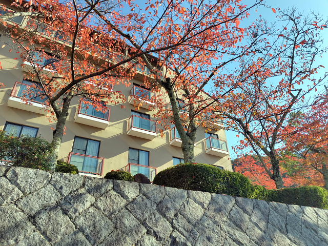 2年ぶりに阪神芦屋からバスに乗るんだがバス停が市役所前に移っていたし、JR芦屋までのルートも変わっていた。以前はIR芦屋駅南口というバス停があったんだが今はなくなっていた。少し間が開いただけでも変わっていくんだ。東お多福山登山口着9時頃。降りたのは6人ほどで土曜日でも少なめ。10月末に来た時よりも秋らしくなっている。峠の入口横のカエデは真っ赤になっていた。
