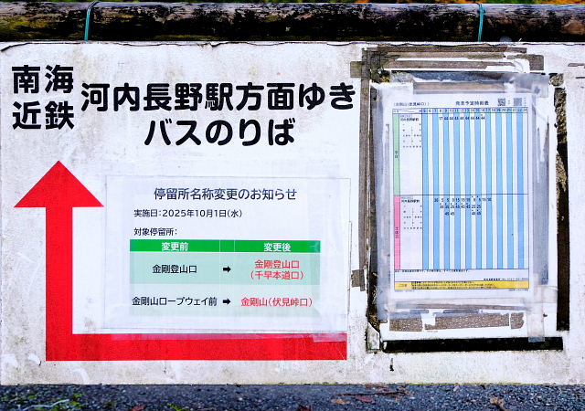 早朝始発バスだから空いてるだろうと思っていたが……出発時刻になるとズラリと列が出来ていた。終点金剛山(伏見峠口)着7時18分。金剛山ロープウェイ前というバス停名は10月1日から金剛山伏見峠口に変わった。ロープウェイ、乗り場、香南荘の撤去工事も終わり一時代が終わった感じがする。このロープウェイが運転しだしたのは1966年だから、約60年前。2019年に運行停止して今年で撤去完了。その間このロープウェイに乗ったのはほとんどなかったけど、長男が小さい頃に妻と3人でロープウェイ登山をして香南荘に1泊したことがあった。そんな想い出がある乗り物だったんだ。