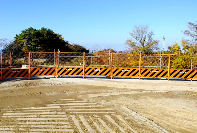 頂上周遊路に着くと見事な紅葉になっていた。社務所に行くより上のロープウェイ駅と香南荘跡地を見ておきたくなった。今日一番の紅葉はこの周遊路周りだった。ロープウェイ山上駅は跡形もなく整地されていた。展望台にハスハスキー犬連れのハイカーが一人。ワンちゃんにカメラを向けると“ウウ~”と威嚇していた。トイレ前のドウダンツツジは真っ赤になっている。まえに香南荘だった辺りは平坦地になりフェンスで囲われていた。また新しくナンか建てるんだろうか。使われなくなった建物が撤去されスッキリしたが……我が家の状況と似ているなあ。頭の中では以前の映像が残っている。