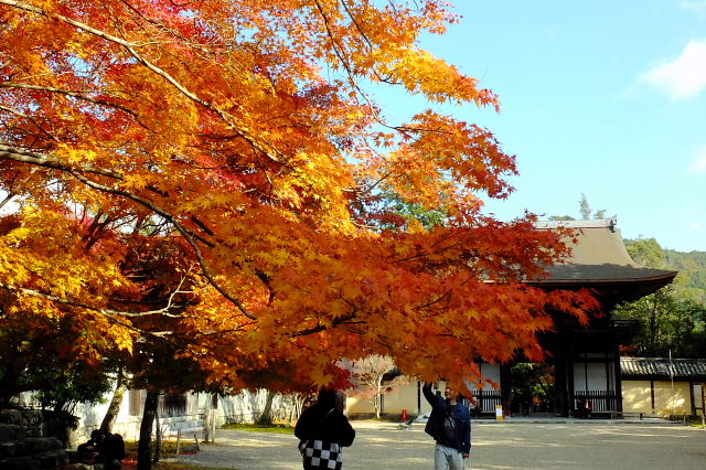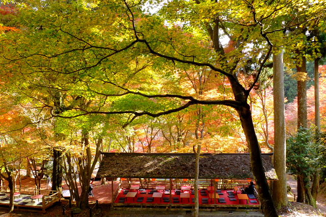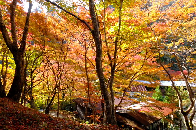 朝起きてもどっちにするか決まらない。どっちに行くにしても6時3分の急行に乗ることになるから……。難波に着いてやって行き先決定。やはり当初の予定通り愛宕にしよう。阪急の特急に乗り桂乗換、嵐山着7時45分。駅回りは紅葉している木もあるが山肌は少し色付いた程度でスッキリしない。今日は晴とのことだが朝の光は弱く紅葉を引き立たせるほどじゃない。清滝行きバスを待つ人は5人。外人さんカップルは愛宕念仏寺にいくとのこと。東京から来ている人とお喋りしながらバスに乗る。この人は化野念仏寺(鳥居本)で降りるとのことだったが、折角京都に来たんだから、外人さんに人気の愛宕寺も見て回ったらイイとアドバイス。鳥居本で降りたのは日本人2名だけ、他は全員(自分以外)愛宕寺で降りた。