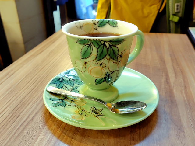 JRバスは2時16分発。座れたのでウツラウツラ。今日のティータイムは三条通西端の 珈琲工房てらまちに行きたかったので千本三条下車、3時頃。ここは珈琲カップが良いのでお気に入りのカフェとなっている。と言ってもまだ2回目なんだが。小腹も空いていたのでオムライスと今日のコーヒー(グァテマラ・オリエンテ)にした。空いてたのでテーブル席に座りマッタリ。お客はカウンターにニイチャンが一人、後から外人カップルがやってきた。オムライスの味は普通だったが、このカップで飲むコーヒーは格別。帰りがけすぐ横にクリームブリュレドーナツを売ってる洋菓子屋Brulee Kyotoがあった。白人女性が一人買っていた。欲しくなり2個ゲット。こんなのは気分で買うのが一番。京都にはそんな店がたくさんある。