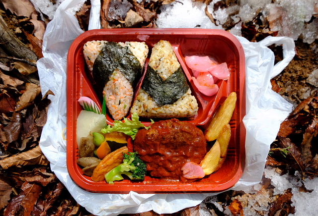 12時前になりランチ。不味いコンビニ弁当じゃなく今日はまともな弁当。お山の食事は優雅にいかなくては。百井峠から天ヶ岳に登るハイカーもいるはずなのに足跡が全くナイ。昨日に降った雪なんだろうか、それにしてもハイカーが全くいない。ネットで言う登山ブームなんて怪しいもんだ。有名の山にワンサカ押しかけてるだけのことなんだろう。