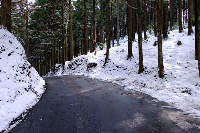 今日も下りは百井峠から百井分かれに降り、車道を鞍馬まで歩いた。鉄塔広場から百井峠までは雪の上、そこから百井別れの間の道は雪が溶けていたけど斜面にはゆきが残っていた。百井別れから古道橋まで降りてやっと雪が消えてきた。