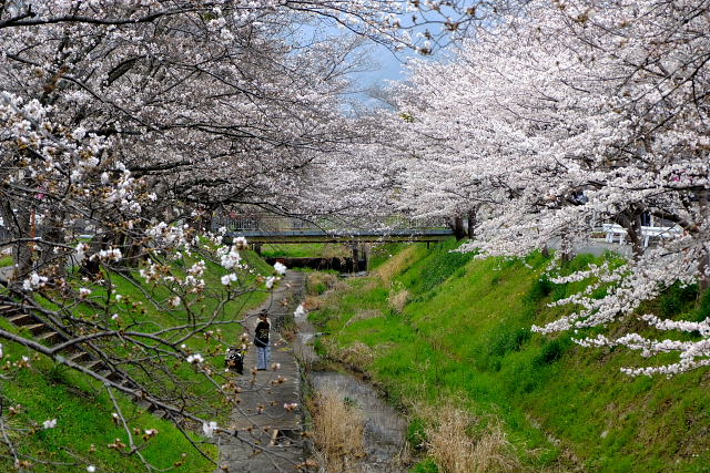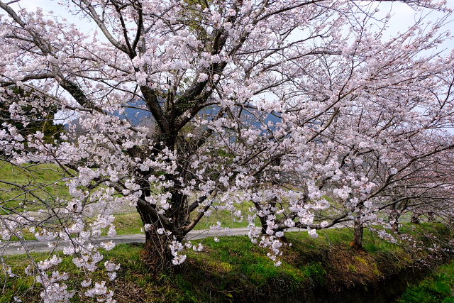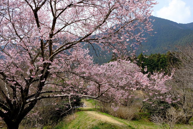 今日は他に寄っても満開は見られそうにナイ。それでも一応見ておこうと葛城古道を辿り百々川まで降りた。全く有名じゃない山里の桜並木だから観光客なんて一人もいない。金剛葛城山を背景にした桜だから写すとイイ感じになるんだがやはりまだ花が少ない。